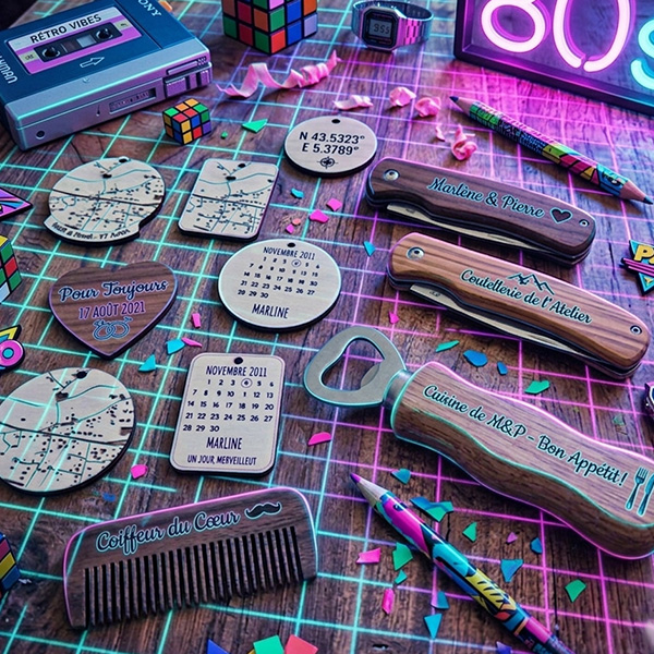 Grâce à la précision de la gravure laser, nous donnons du caractère à une large gamme de produits :