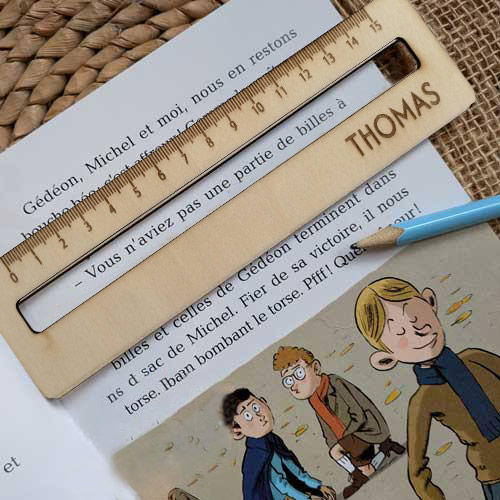 Offrez à votre enfant une règle de lecture personnalisée en bois, spécialement conçue pour faciliter l’apprentissage de la lecture. Grâce à sa fenêtre de lecture intégrée, elle permet d’isoler une ligne de texte à la fois et d’améliorer la concentration.