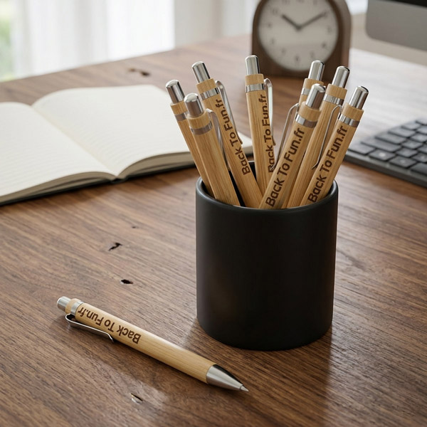 Le stylo publicitaire personnalisé en bambou est particulièrement apprécié pour :